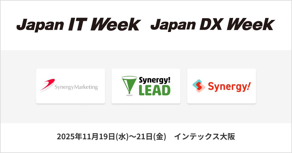 シナジーマーケティング株式会社(所在地:大阪市北区、代表:奥平 博史、以下:当社)は、2025年11月19日(水)〜21日(金)にわたりインテックス大阪にて開催される「Japan IT Week、Japan DX Week【関西】」に出展いたします。